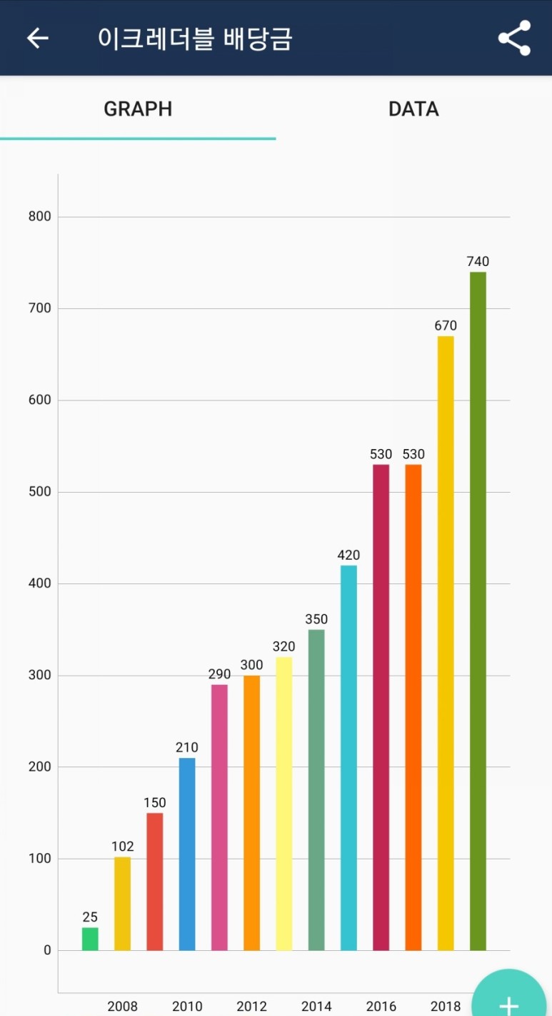 아래에 연간 배당금을 그래프로 그려봤어요.