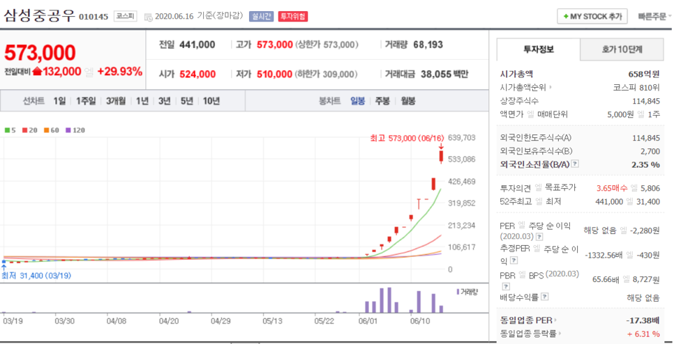 약 7개월에 걸쳐 80원짜리 동전 주가 5만 원을 찍죠 ㅋㅋ 이 무슨 작전이란 말인가??