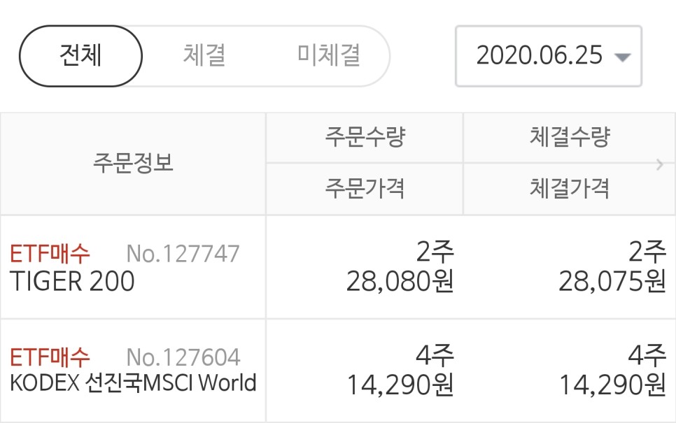 미래의 아이에게 주는 계좌에도 드디어 잔고를 싹 비우기 위해 두 가지 ETF를 매수했다.