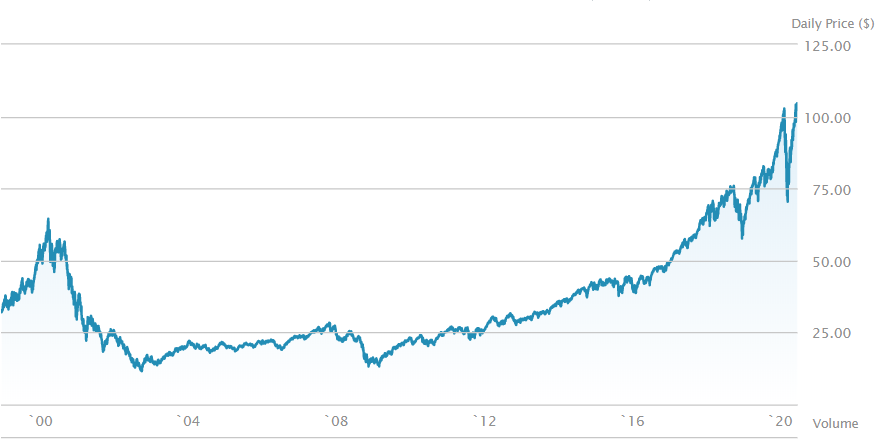 이 집도 상당한 맛집이다. 닷컴 버블이 꺼진 이후로 고점 탈환하고 산꼭대기로 달려간다. 주가가 상당한 기울기로 상승한다. 귀신이 뒤에 쫓아가나 보다.