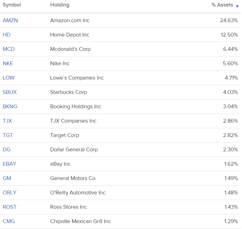 어딜 봐서 경기순환주라는 건지 이해가 안 간다. AMZN(아마존), HD(홈디포), MCD(맥도날드), NKE(나이키), SBUX(스타벅스) 등등