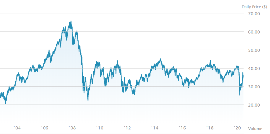 다른 산업 군에 비해서 주가가 와따리 가따리 하지만 미국의 기업이 돌아가기 위해선 이런 금융주들의 대출이 있기 때문에 가능하다. 돈을 엄청 잘 번다. 주가가 낮을 뿐이다.