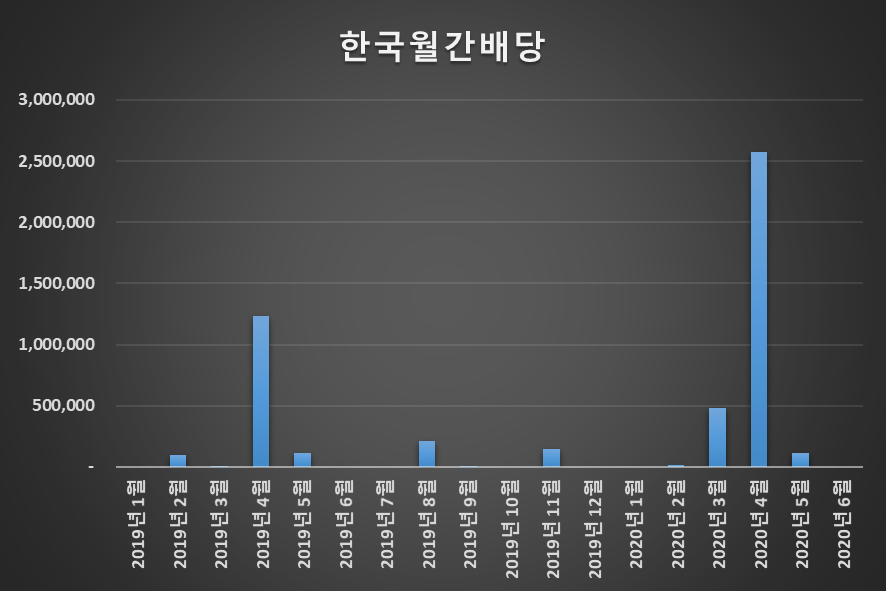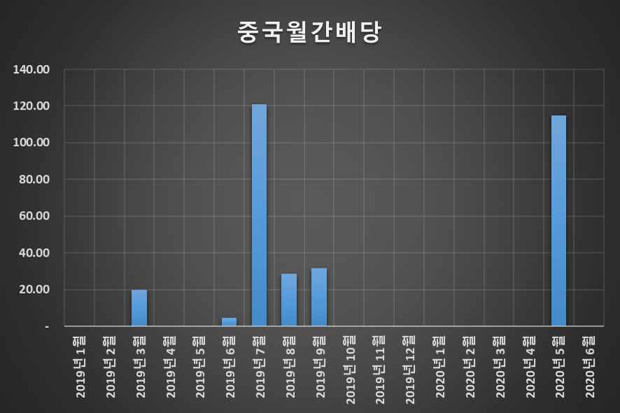 중국은 아직 포트폴리오가 완성이 되지 않아 배당금이 전혀 규칙적이지 못하다.