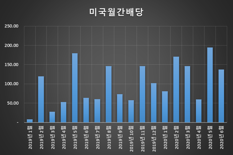 미국은 월별로 다양하게 들어온다. 배당금이 증가하는 모습을 보니까 더 열심히 안 열심히 투자를 해야겠다.