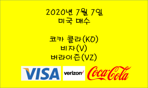| (파이어족, 경제적자유, 조기은퇴) 7월 7일 미국 매수 코카콜라(KO) 비자(V) 버라이즌(VZ) (0) | 2020.07.08 |