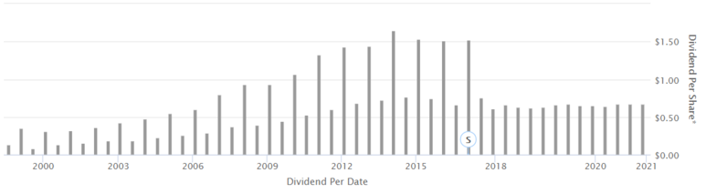 지저분하게 주는 건 영국의 파운드화를 달러로 환전해서 그래요. 2017년부터 반기 배당에서 분기 배당으로 바뀌었어요. 현재 엄청난 배당률로 인하여 상당히 매력적입니다. 원래 주가가 60달러에서 70달러까지 갔었는데 그때가 거의 배당률이 4%였어요. 쉽게 망하진 않을 기업이라서 다음 달에도 대량으로 매수해야겠어요!