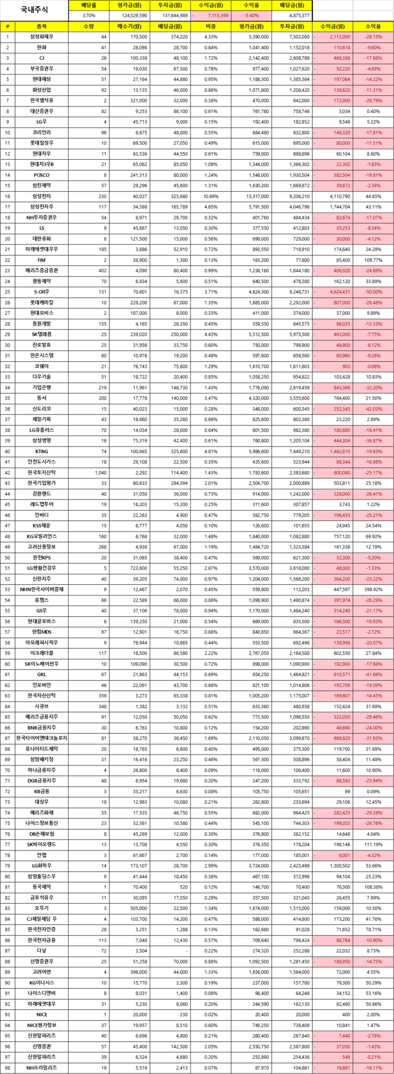국내주식과 미국주식 포트폴리오가 성적이 가장 저조합니다. 하지만 규모가 크니 가장 든든한 계좌죠. 다양한 산업군에 분산되어 있어서 계좌가 잘 오르지도 떨어지지도 않더라고요. 이 점이 가장 중요한 포인트라고 봅니다.