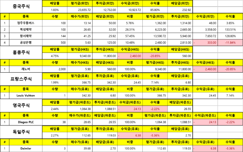 중국주식, 홍콩주식, 프랑스주식, 영국주식, 독일주식