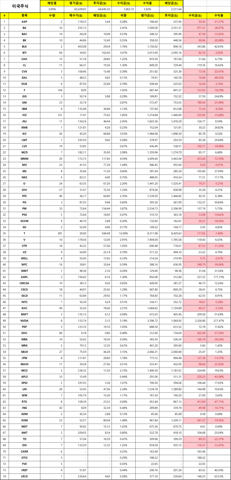 불긋불긋 한 포트폴리오가 떡하니 있네요. ㅋㅋㅋ 매달 느끼는 거지만 정말 누가 오르고 내릴지 감이 안 와요. 이렇게 2년이 되어가니 수익률에는 당연히 무덤덤해져요. 알 수 없는 것을 알려고 하면 힘들고 지칠 뿐이니까요.