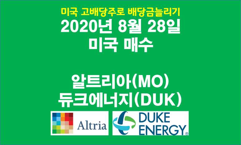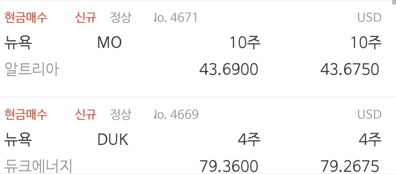 오늘은 28일에 매수한 미국의 담배 회사인 알트리아(Altria, MO)와 유틸리티 회사인 듀크에너지(Duke Energy, DUK)를 공유하려고 해요. 25일이 월급날인데 28일에 거의 다 사버린 것 같네요.ㅎㅎ