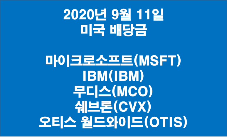 오늘은 11일에 받은 배당금을 공유하려고 해요. 하루에 5군데에서 배당금이 들어와서 행복했더랬죠. 윈도우와 마이크로소프트 오피스, 클라우드로 유명한 마이크로소프트(MSFT), 기업용 컴퓨터, 클라우드, 서버용 장비를 만드는 IBM(IBM), 글로벌 신용평가사인 무디스(MCO), 엑슨모빌과 함께 미국의 양대 석유회사인 쉐브론(CVX), 글로벌 엘리베이터 회사인 오티스 월드와이드(OTIS)에서 각각 배당금을 지급해 주었고요.