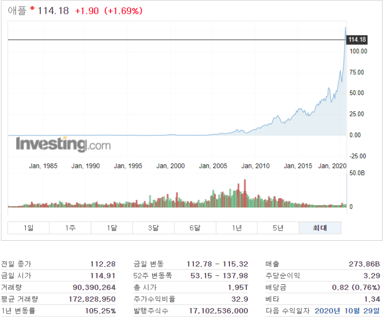 애플은 요즘 주가가 고점 대비 20%가량 하락 중이라서 자꾸 고민하게 돼요. 이번에 몇 주를 더 매수하는 기회를 가져야겠어요. 이럴 때 아니면 또 언제 이런 기회가 오겠습니까? ㅋㅋ