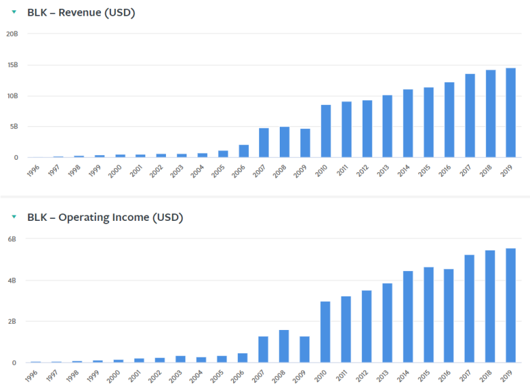 자산운용사의 특성상 주가 상승에 따른 수수료가 증가하기 때문에 어찌 보면 주가가 올라야 돈을 더 많이 버는 것이죠. 우리가 주식 투자를 하는 이유가 주가는 장기적으로 우상향한다는 전제를 깔고 하는 것이잖아요? 장기적으로 주가가 오른다면 자산운용사도 대부분 장기적으로 성장한다는 말과 같은 의미가 됩니다. 그래서 저는 블랙락, 인베스코, 스테이트 스트리트, 찰스 슈왑 같은 자산운용사는 충분히 포트폴리오에 담아 둘 만하다고 생각해요.