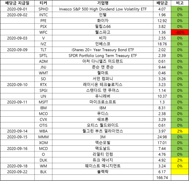 웨이스트 매니지먼트(WM)에 이어 22일에 블랙락(BLK)에서 들어온 배당금을 공유하려고 해요. 현재 2주를 보유하고 있어서 6.17달러를 배당금으로 받았고요. 9월 한 달간 받은 배당금은 166.74달러입니다.