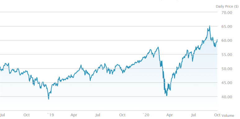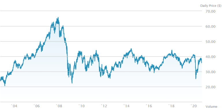 - XLE는 미국을 대표하는 에너지 기업 위주로 담고 있어요. 최근에 에너지 기업들의 폭락으로 인해 20년 전 주가로 돌아갔어요. 아무래도 원유 가격의 영향을 많이 받기 때문에 주가로 들쭉날쭉한 데다가 최근 코로나 때문에 유가가 하락하고 아직도 많이 흔들리고 있어요.