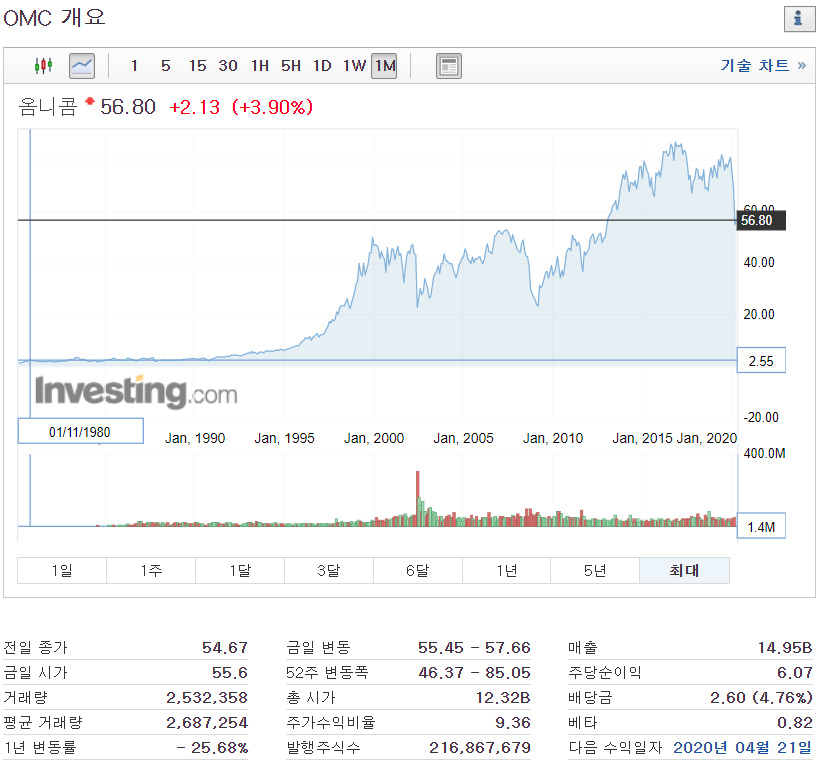 옴니콤은 미국에서 설립되어 1986년 광고업을 시작했으며 대형 광고회사입니다.