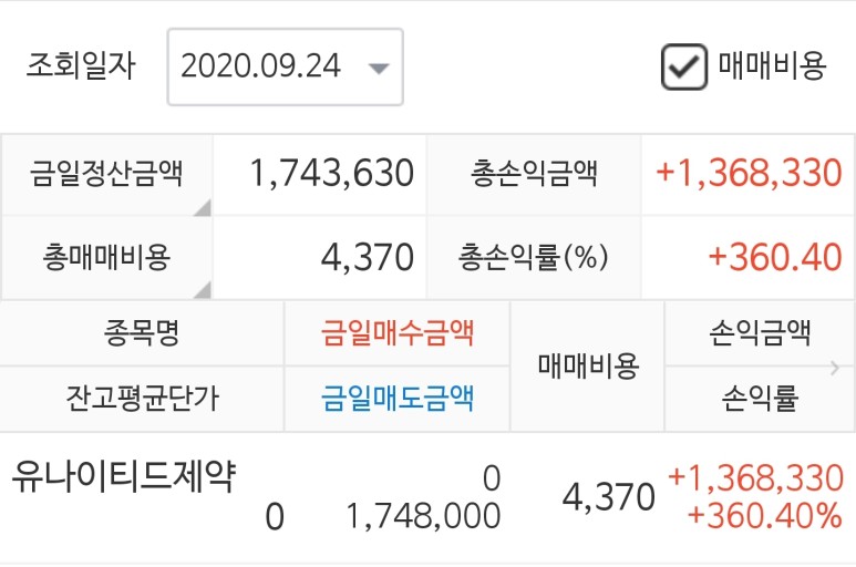 최근에 유나이티드제약의 주가가 엄청 올랐었어요. 그래서 팔까 말까 많이 고민하다가 결국 팔았습니다. 코로나 변이 바이러스에 효과가 있다는 기사는 많이 접했는데 그런 기사를 확신하지 못해서 팔게 되었고요. 그 팔고 나온 현금은 다시 재투자를 하려고 해요.