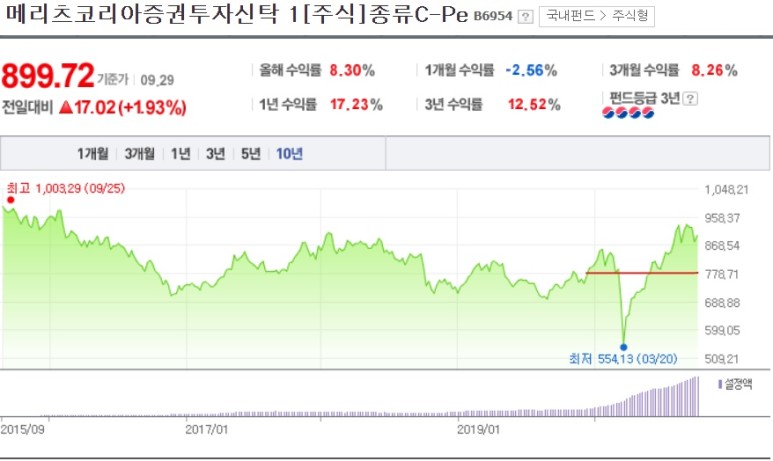 제가 보유하고 있는 메리츠코리아증권1호[주식]C-Pe는 메리츠자산운용에서 관리하고 있어요.