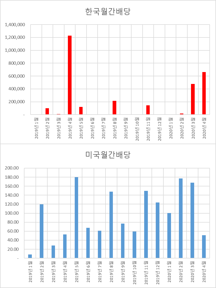 미국 주식 배당금 4월 현재 50달러 2020년 현재 496.41달러