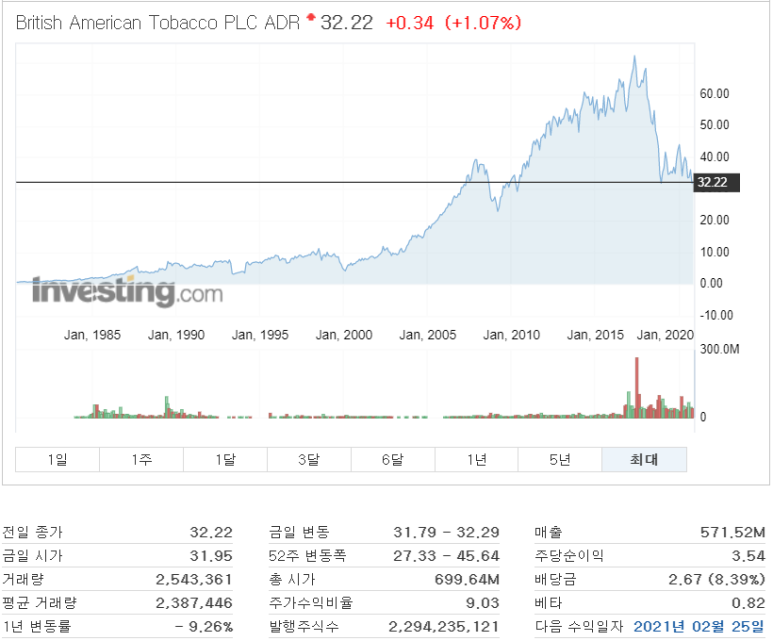 브리티시 아메리칸 타바코(BTI) 1주