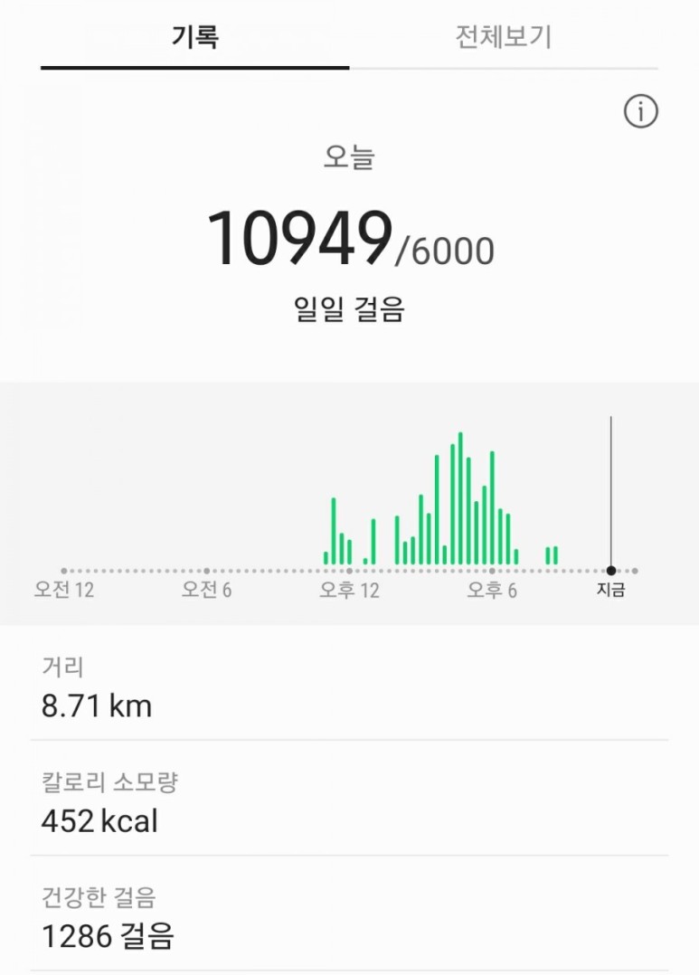 오늘은 휴대폰(삼성 갤럭시S10)과 시계(샤오미 미밴드5)로 하루에 얼마나 걷나 측정해 봤어요. 오늘 자가격리 끝나서 만보걷기를 시작했는데 다행히 만보를 걸었네요.