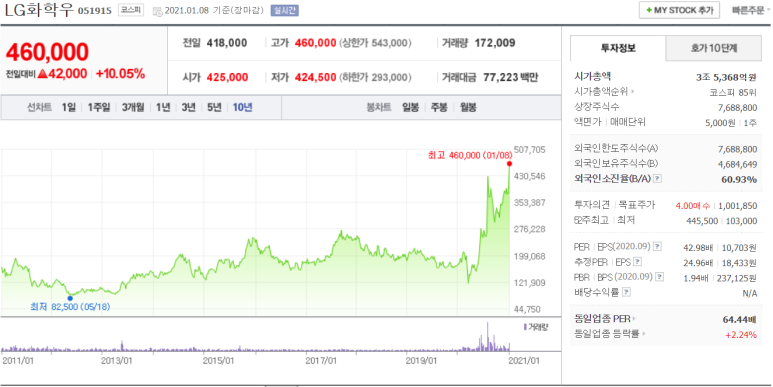 LG화학의 주가가 2020년 들어 급격한 성장을 하고 있어서 버블이라고 생각하는 사람도 있고 미래를 위한 기대감이라고도 하죠.