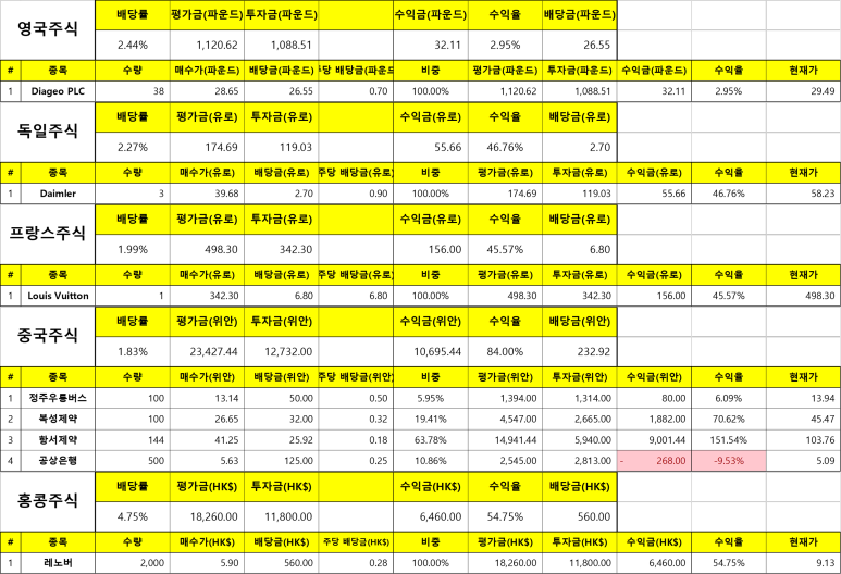 저번 달과 동일한 상태로 이번 달도 결국 프랑스 주식은 못 담았네요. ㅋㅋ 돈이 모자랍니다. 흑흑