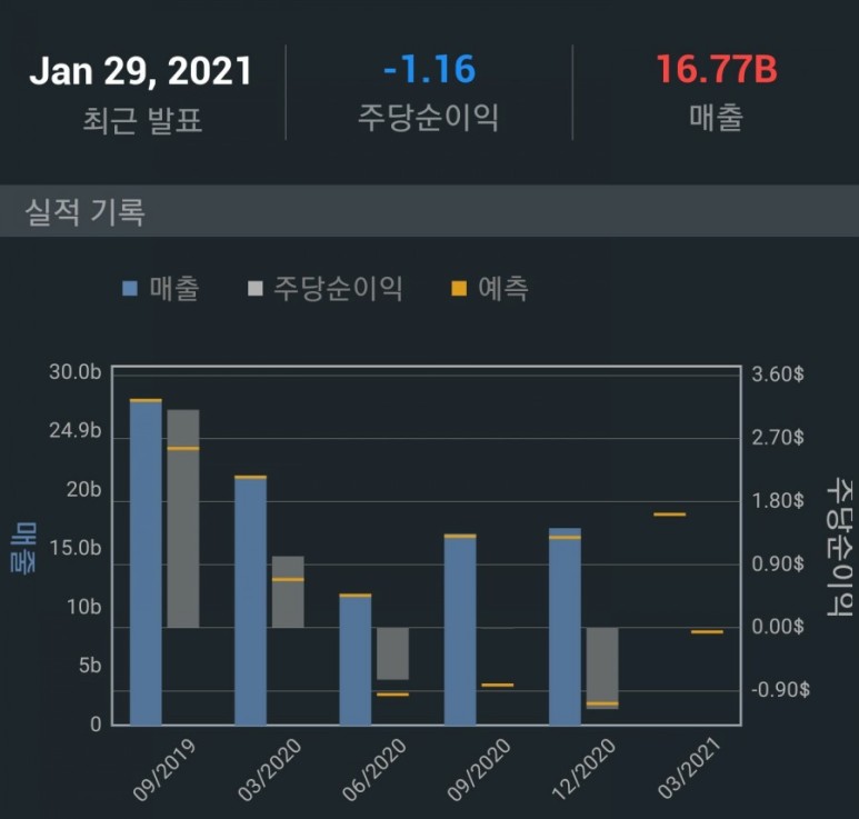 세 분기 연속 적자입니다. 유가가 반등하는 데 성공했지만 실적은 따라주지 못했네요. 이래서 정유주보다 돈 잘 버는 기업으로 돈을 몰아주는 것 같습니다. 시장의 흐름이 그런 걸 어찌하겠습니까!