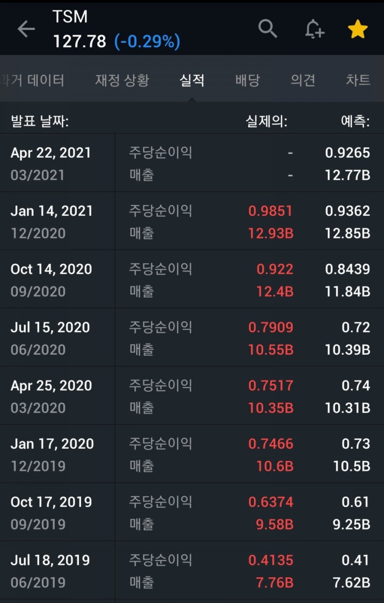 이거 장난 아닙니다. 삼성전자도 물론 실적 서프라이즈 났지만 TSMC의 장점은 마진율이 좋고 꾸준히 상승한다는 거예요. 물론 자체 생산품이 없다는 것이 조금 아쉽죠. 다른 기업의 이름을 달고 소비자에게 가니까요.