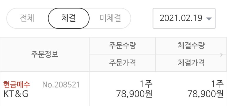 오늘 시장이 훅 떨어졌을 때 마침 MTS로 접속을 해서 계좌마다 돌아다니면서 돈이 있나 확인했는데 8만원이 있는 계좌가 있었어요. 무엇을 살까 찾다가 KT&G(케이티엔지)가 눈에 들어왔습니다. 79,000원이 꺠졌길래 큰 고민 없이 냅따 주워 담았습니다. 이 1주가 내년 봄에 4,800원을 지급해 줄 겁니다. 이게 바로 배당금 투자겠죠?