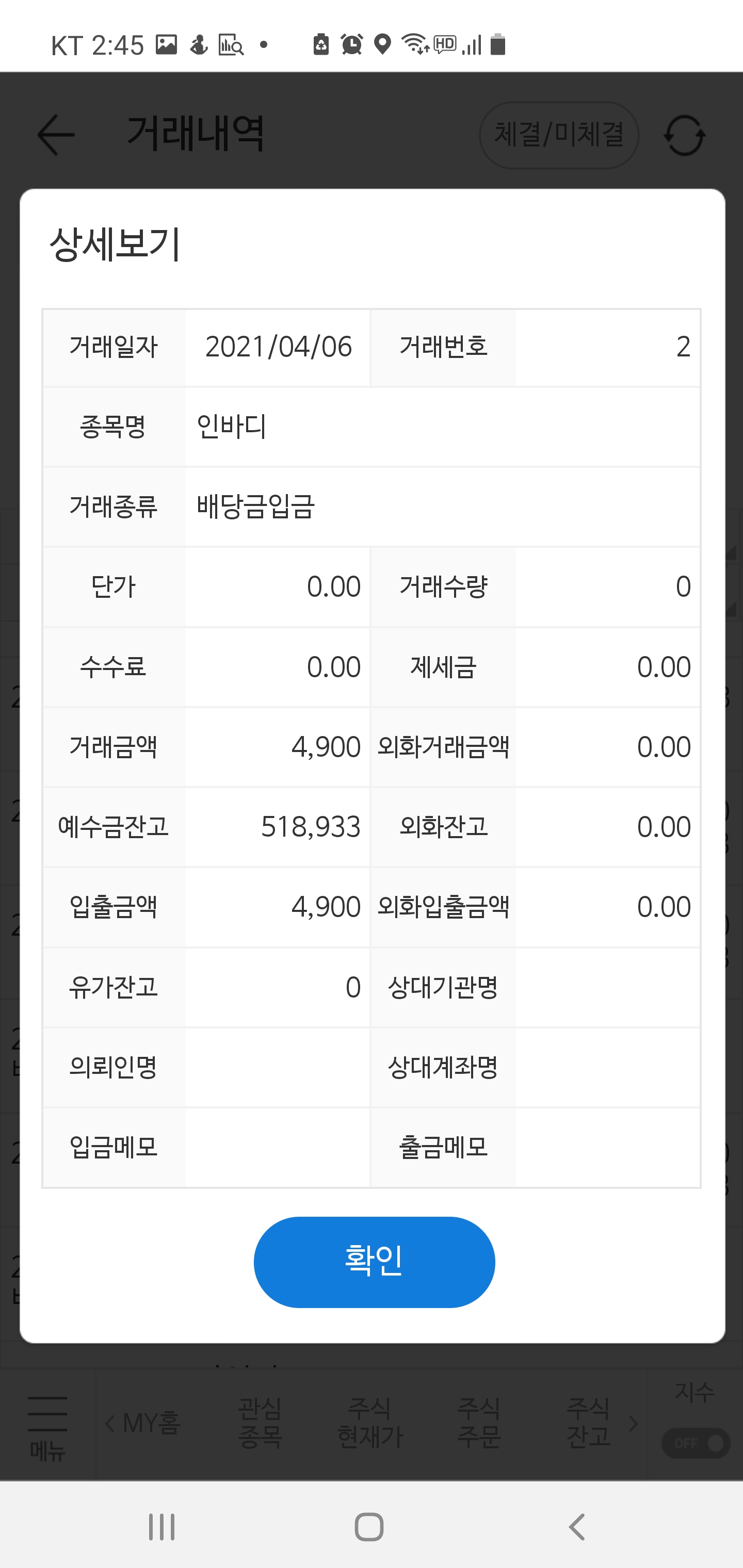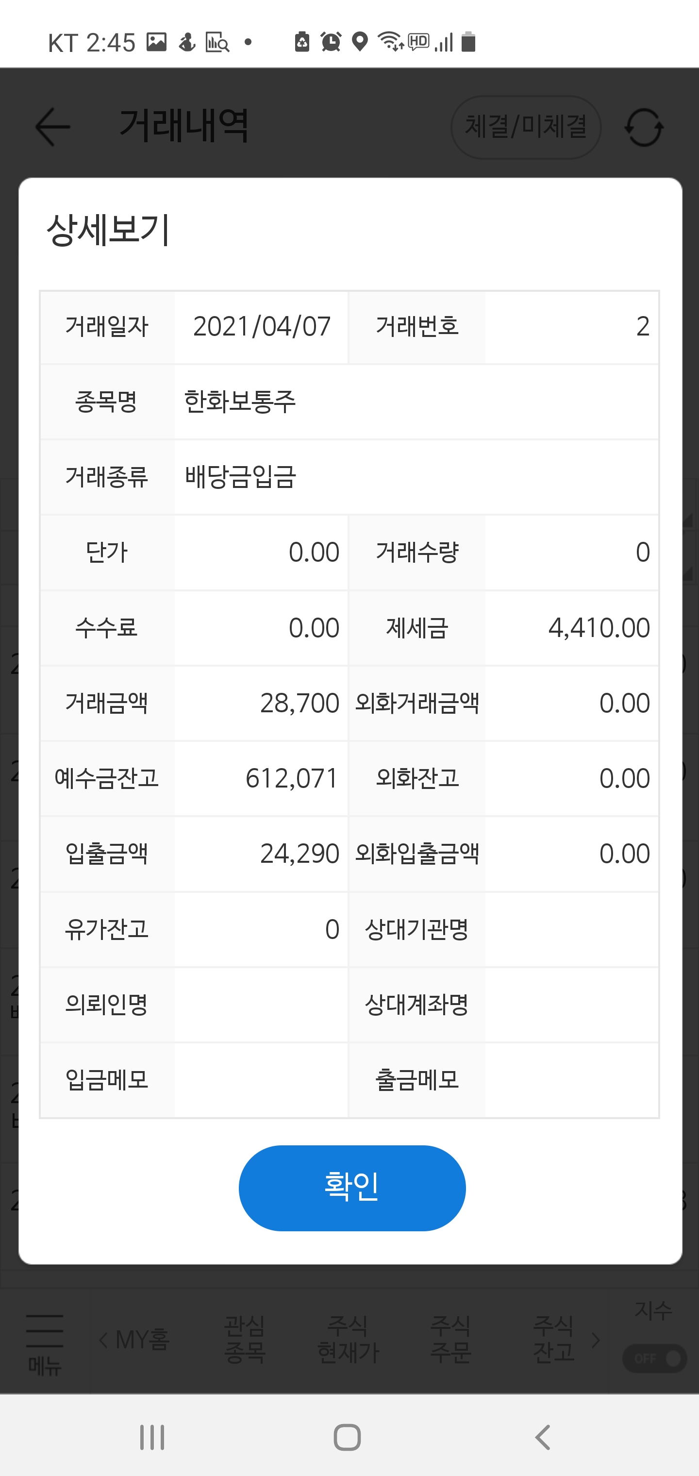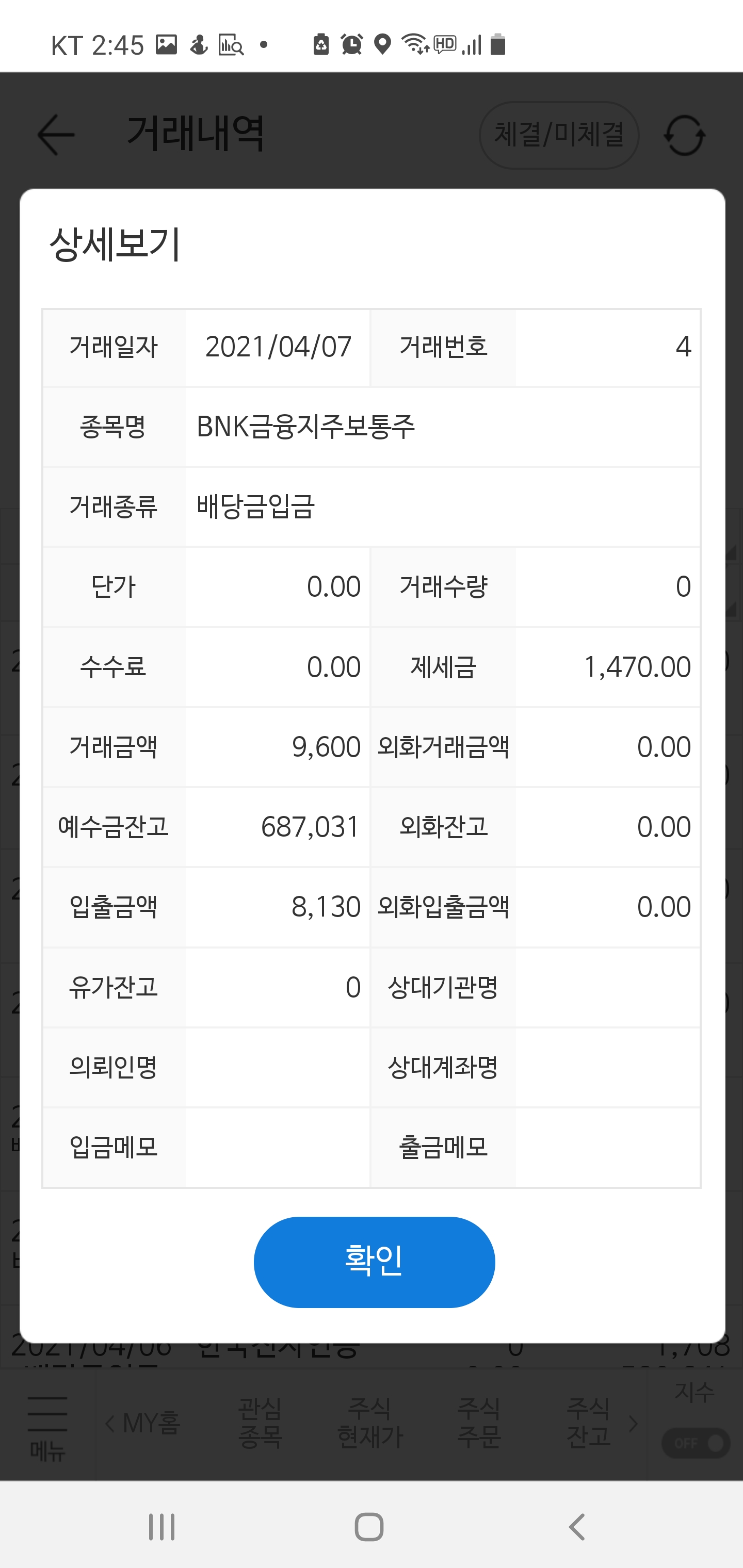 국내 주식으로 받은 배당금의 합은 687,008원으로 거의 70만 원이 들어왔습니다. 정말 풍성한 배당금이지 않나요?