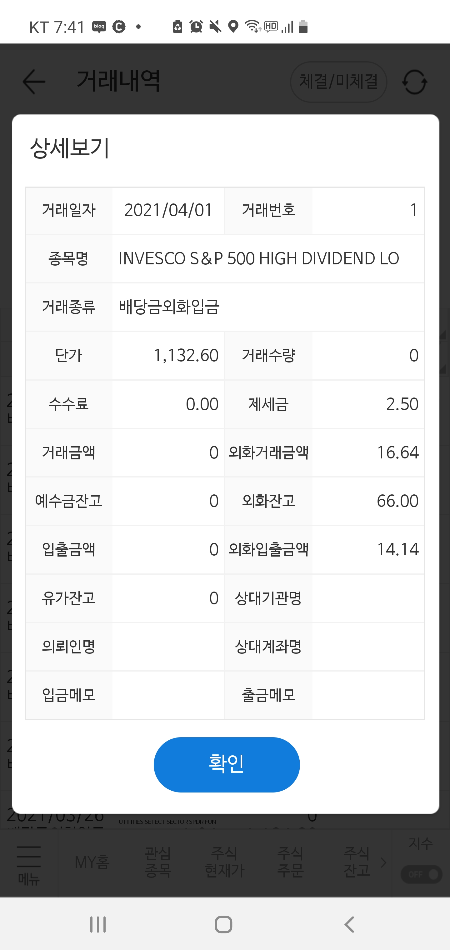 3월 26일에 들어온 XL시리즈의 ETF에서 배당금이 들어왔습니다. 항상 3월, 6월, 9월 12월에 들어오는 XL리시즈의 배당금은 사랑이지요. 그 외에 고배당 ETF로 유명한 SPHD와 미국 리츠를 묶어놓은 VNQ의 배당금도 같이 들어왔고요. 모두 합쳐서 53.15달러나 들어왔습니다. 빨리 미국 ETF 배당금도 매달 100달러가 넘게 들어왔으면 좋겠습니다.