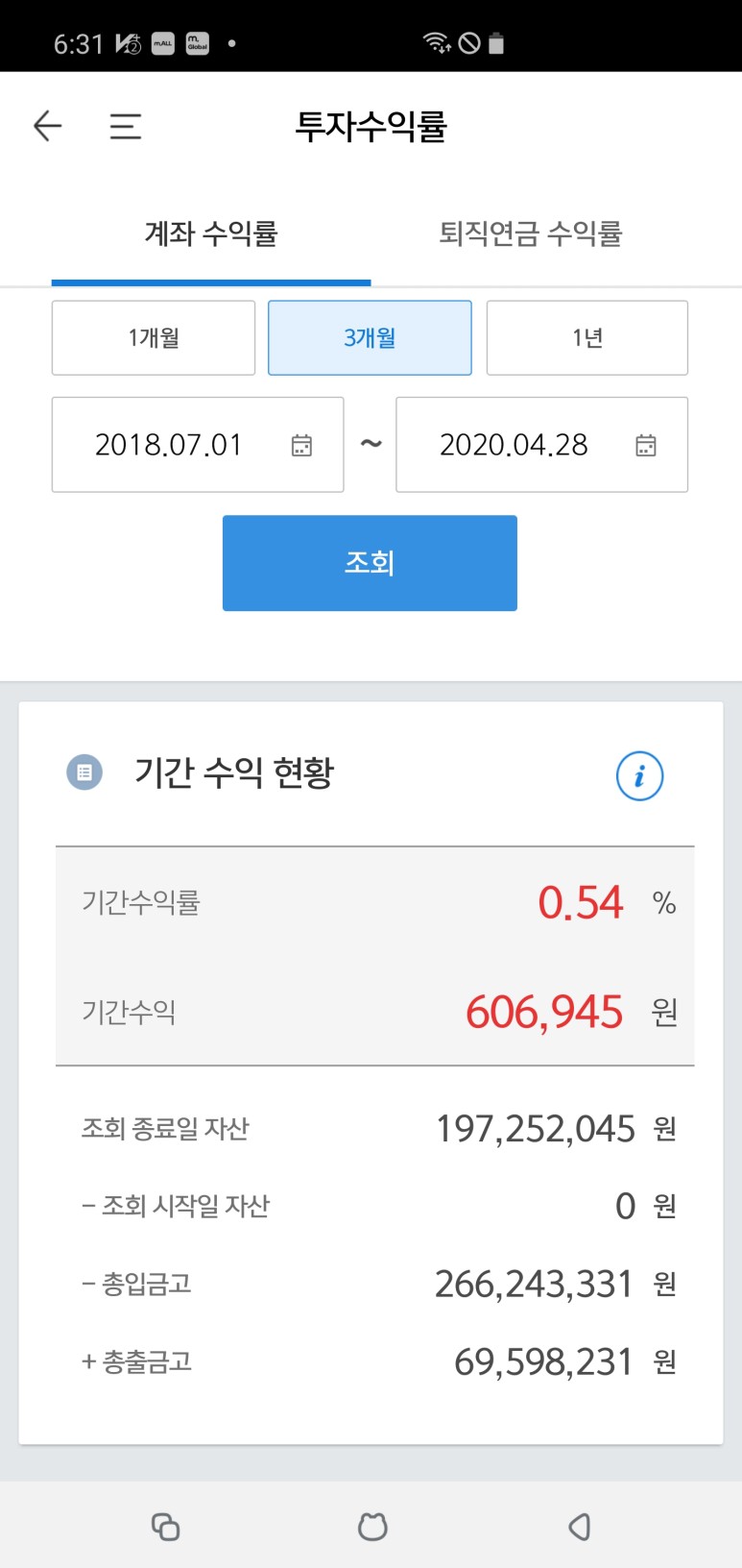 오늘 미래에셋 모든계좌를 조회해보니 빨개요. 얼마만에 보는 빨갱...