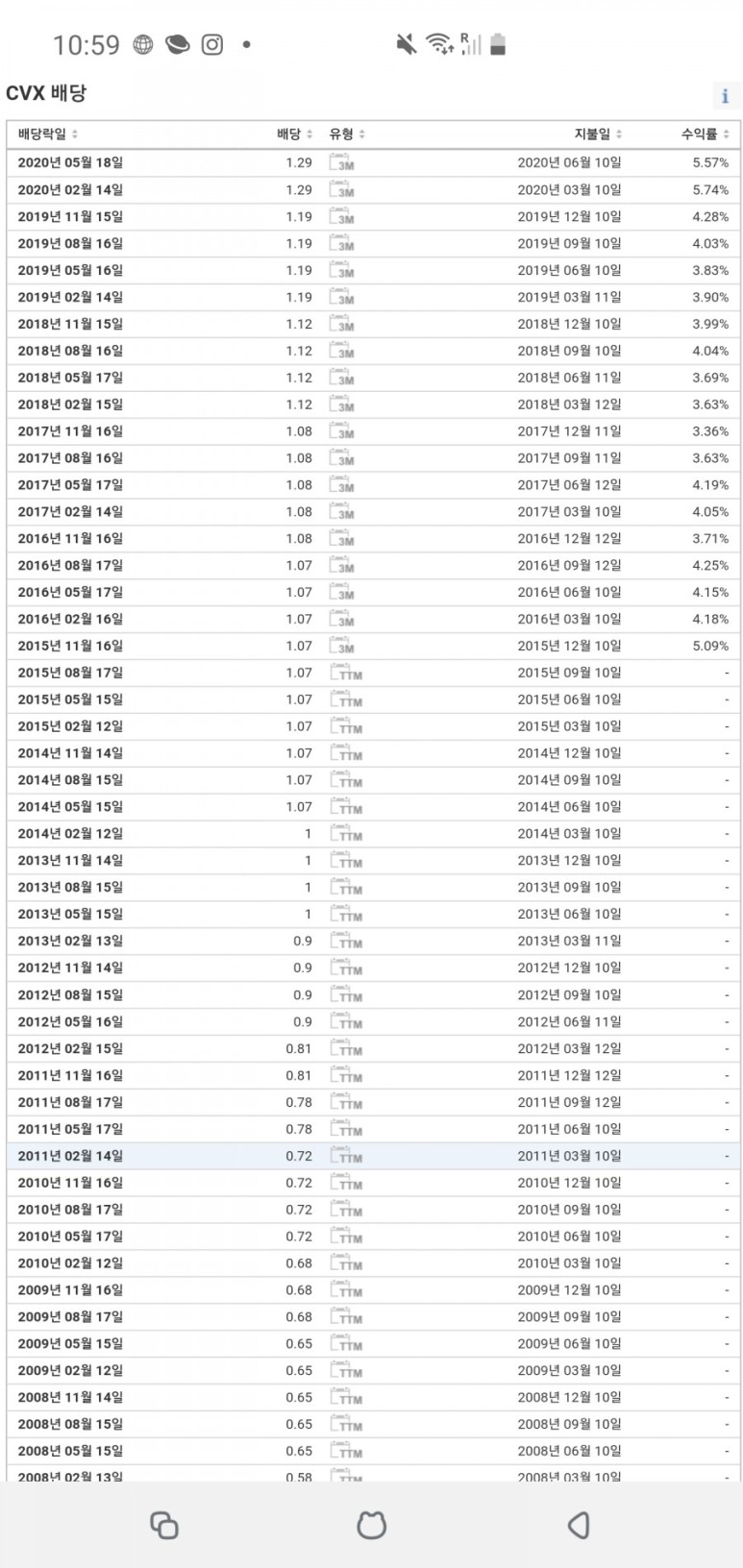 쉐브론(CVX)은 5월 18일이 배당락입니다.