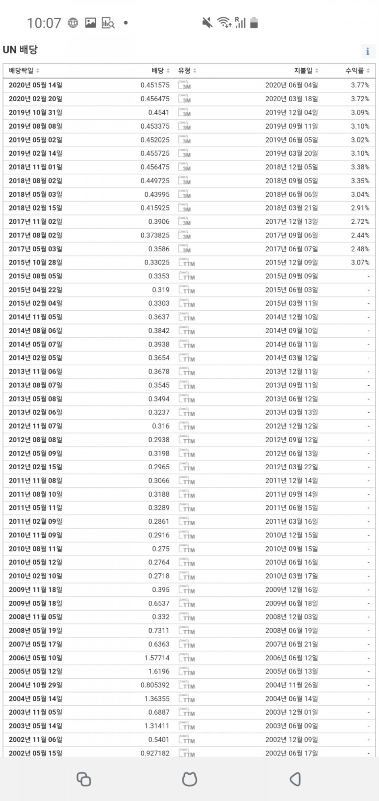유니레버(UN)는 프록터엔겜블(PG)처럼 아무리 경제가 힘들어도 잘 버텨주고 배당삭감이 없는 좋은 기업이네요.