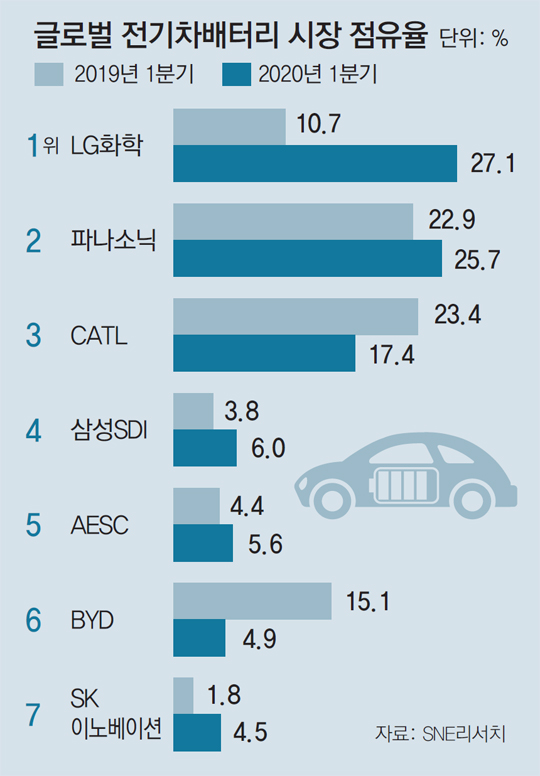 당시 아무도 시도하지 못햇던 사업에 먼저 달려든 것이 결국 2020년 전기차배터리 시장에서 중국과 일본에 제치고 1위로 올라섭니다.