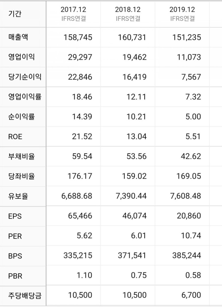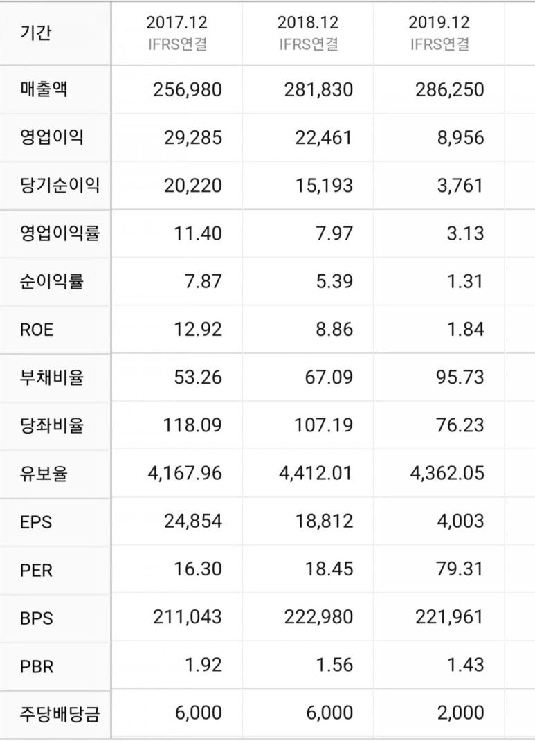 두 기업 모두 2017년을 기점으로 실적이 저 멀리 골로 가고 있어요.