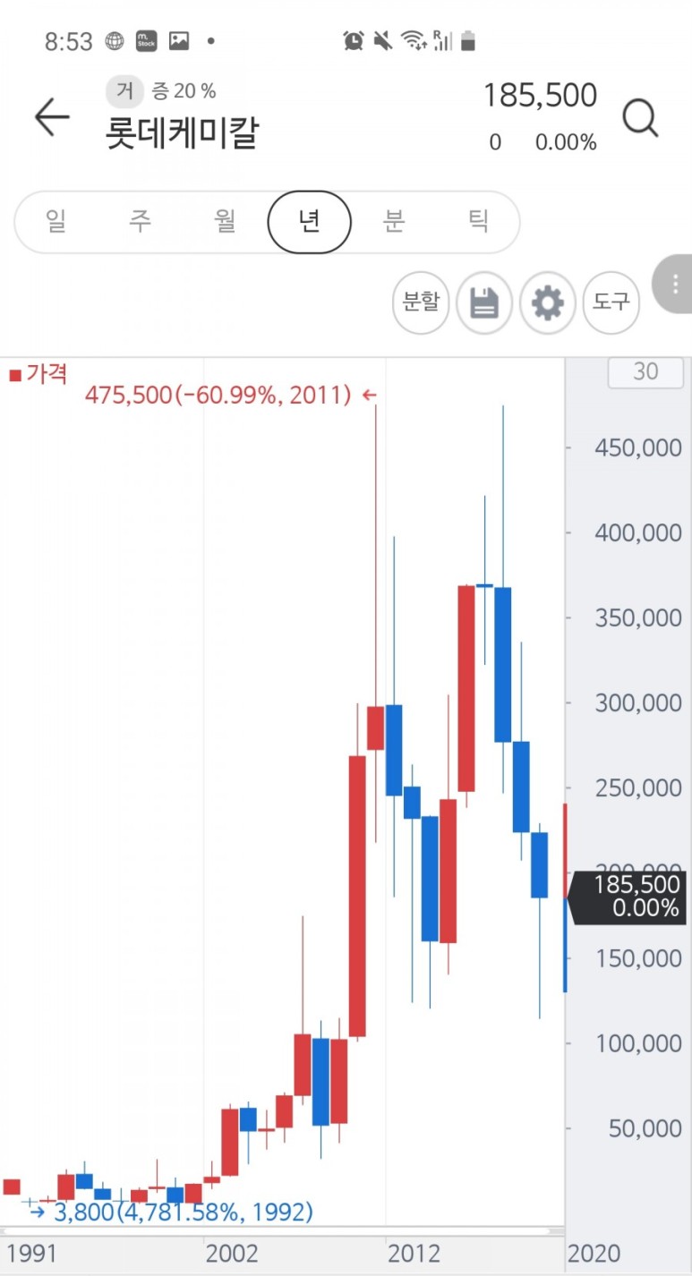 첫 번째는 LG화학 두 번째는 롯데케미칼입니다.