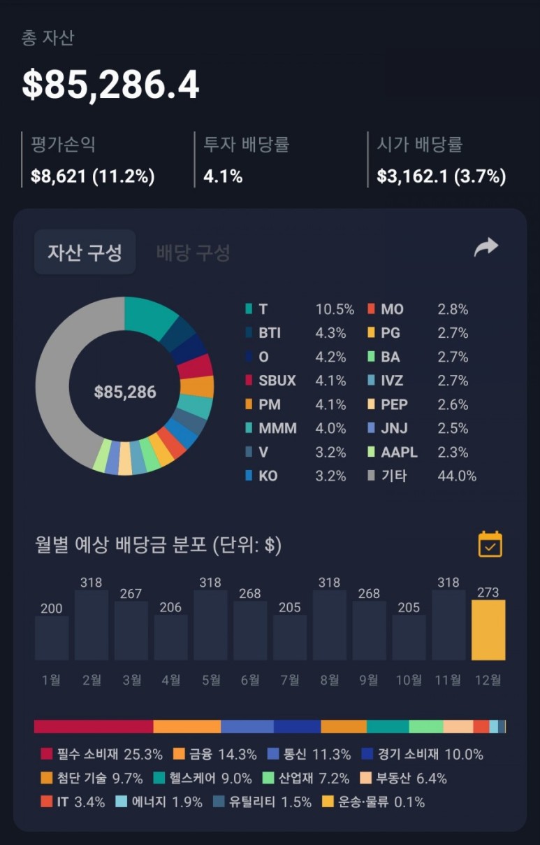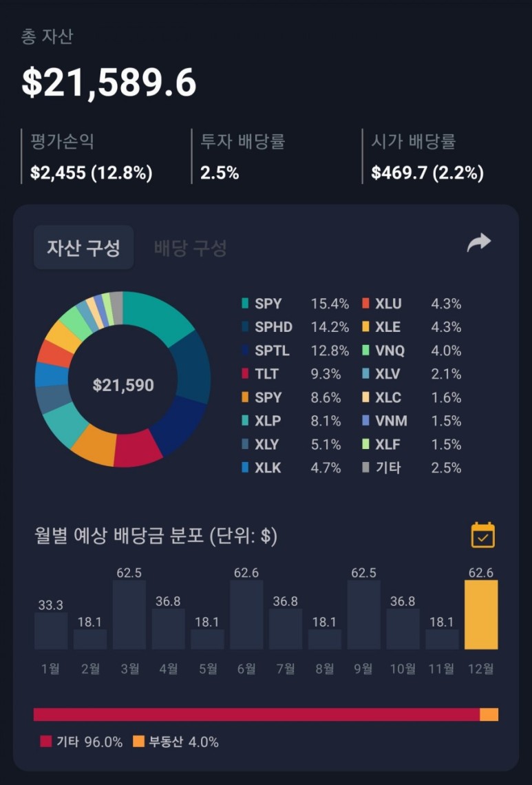 15일에는 총 42달러가 들어왔어요! 역시 비중이 조금씩 올라가니까 배당금도 점점 불어나네요. 이래서 주식을 모으다보면 생각보다 큰 돈이 매달 혹은 매분기에 들어오겠죠.
