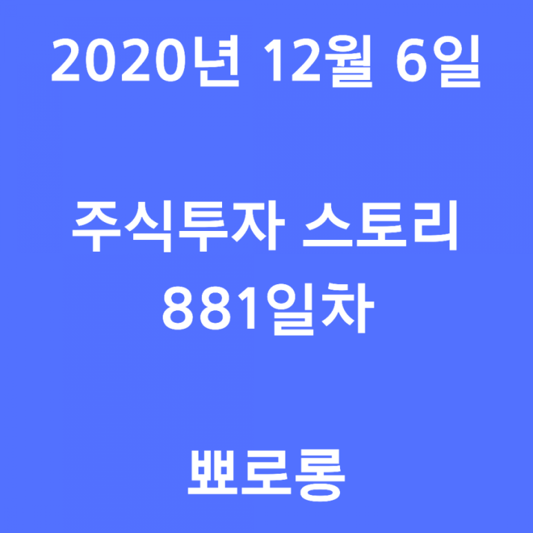 오늘은 주식투자 891일차인 2020년 12월 16일입니다. 벌써 크리스마스가 열흘 앞으로 다가왔네요. 정말 올해도 빠르게 흘러갔어요. 또 한 살 더 먹나봅니다.