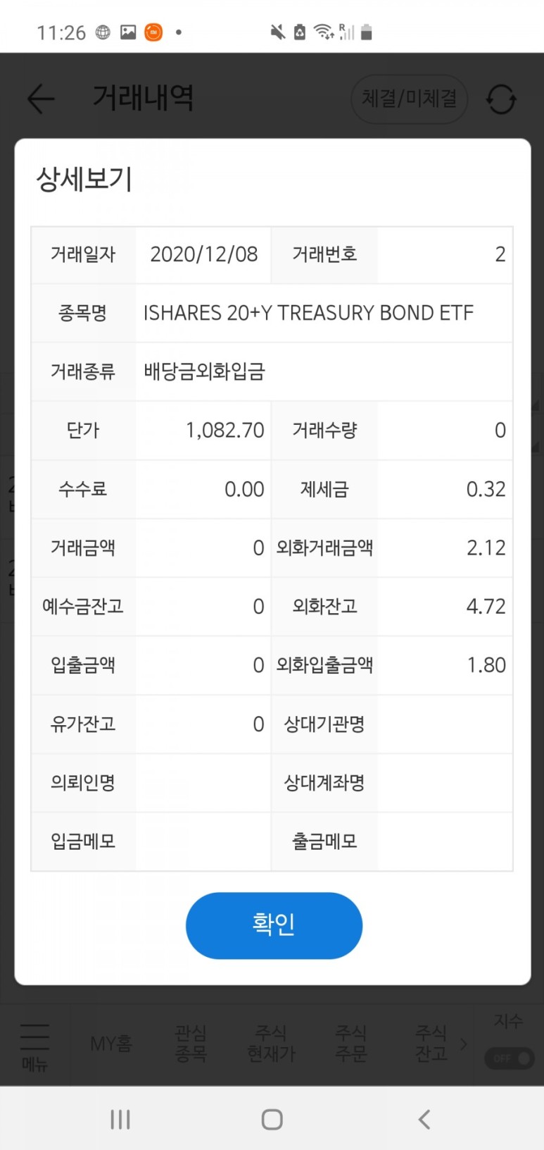 이번에 받은 배당금으로 미국의 통신회사 버라이즌을 2주 매수했어요! 또 다른 통신회사인 AT&T가 배당금을 이번에 동결했기 때문에 소홀했던 버라이즌을 매수했지요.