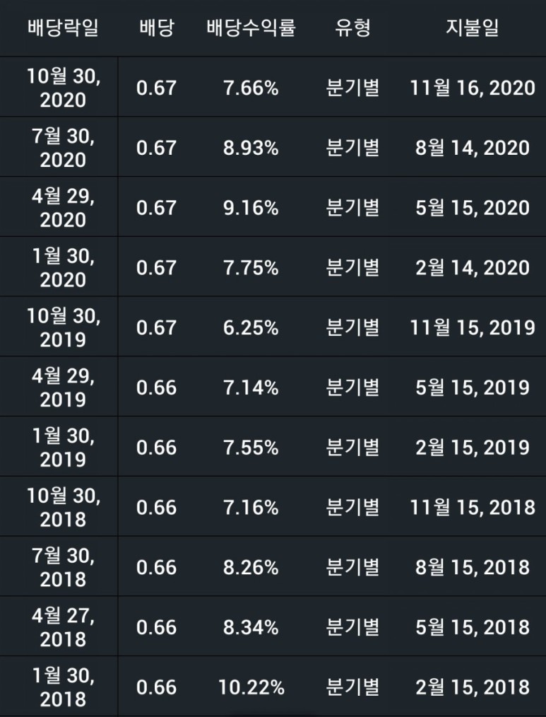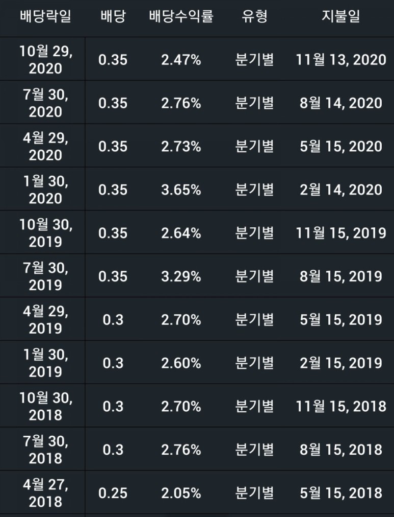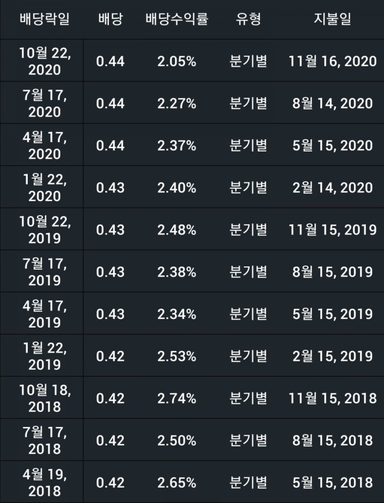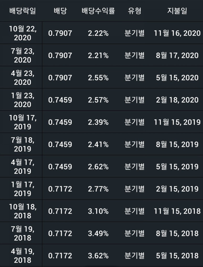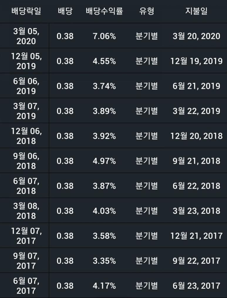 배당금은 3월 이후로는 중단된 상태로 올해는 지급하지 않고 내년쯤 다시 지급해 줄 것 같아요. 아마도 배당금 인상은 없을 없을 것이고 유지 혹은 약간의 삭감 후 지급할 듯합니다.