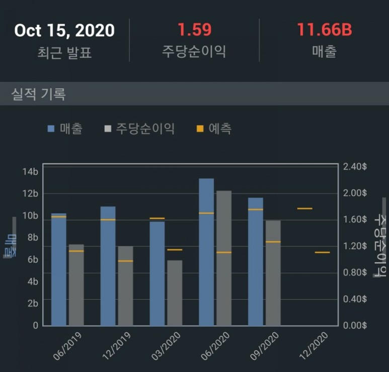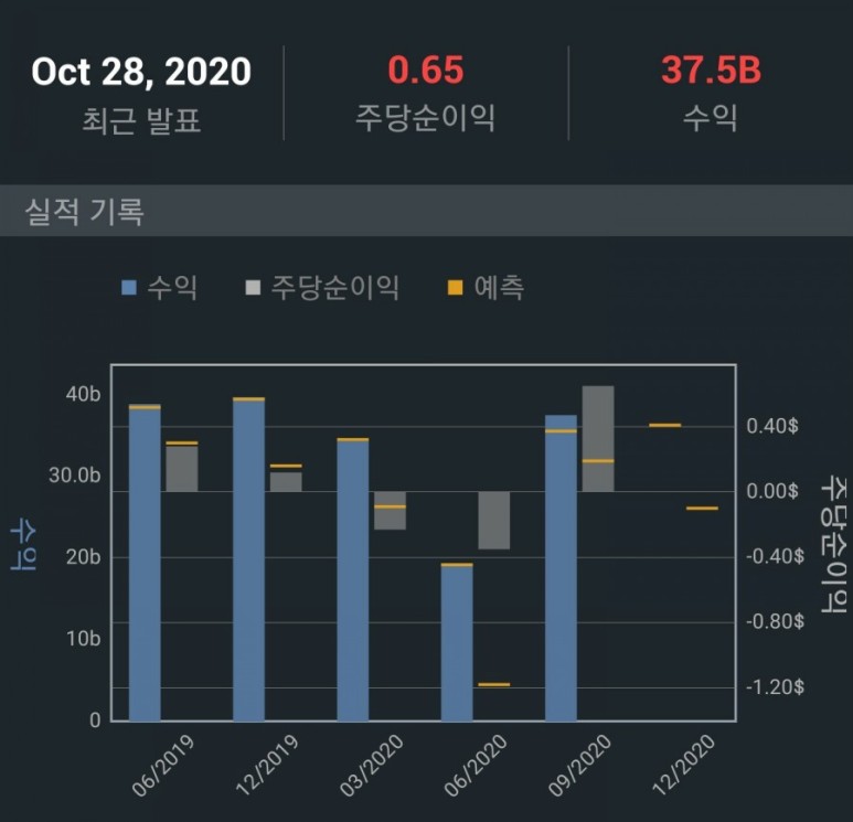실적은 과거의 실적 못지않게 많이 회복을 했고 순이익은 오히려 2019년보다 잘 나왔네요. 다음 실적은 코로나의 영향으로 실적이 하락할 듯합니다. 미국의 확진자 수가 미쳐돌아가고 있어서 말이에요. 하루 15만 명씩 걸리니 정부의 입장에서 자꾸 제재를 가할 수밖에 없겠죠?