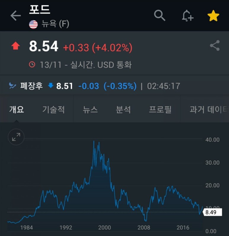 11월 10일에 약 2년 정도 보유했던 미국의 대표 자동차 회사인 제너럴 모터스(General Motors, GM)과 포드(Ford, F)를 매도했어요. 매도를 가급적 안 하고 싶었는데 자동차 회사의 특성상 실적이 좋아져도 주가에 큰 영향을 주지 못하는 점과 배당금이 지급되지 않고 있어서 매도를 했습니다. 물론 더 보유하면 내년 연말쯤에는 배당금이 나올 것 같긴 하지만 팔고 다른 싸다고 판단되는 기업을 조금 더 담아 주고 싶었어요.