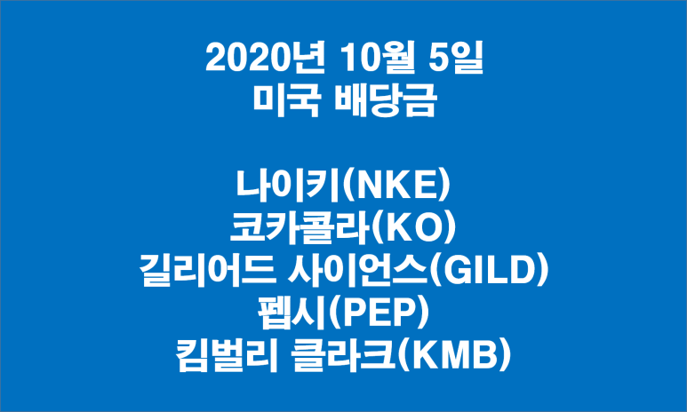 | 나이키(NKE) 코카콜라(KO) 길리어드 사이언스(GILD) 펩시(PEP) 킴벌리 클라크(KMB) 미국 배당금 10월 5일 (2) | 2020.10.08 |