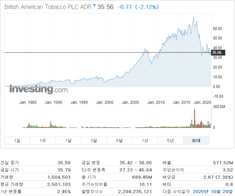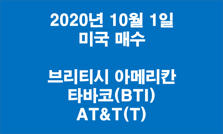 | 브리티시 아메리칸 타바코(BTI) AT&T(T) 미국 매수 10월 1일 (0) | 2020.10.07 |