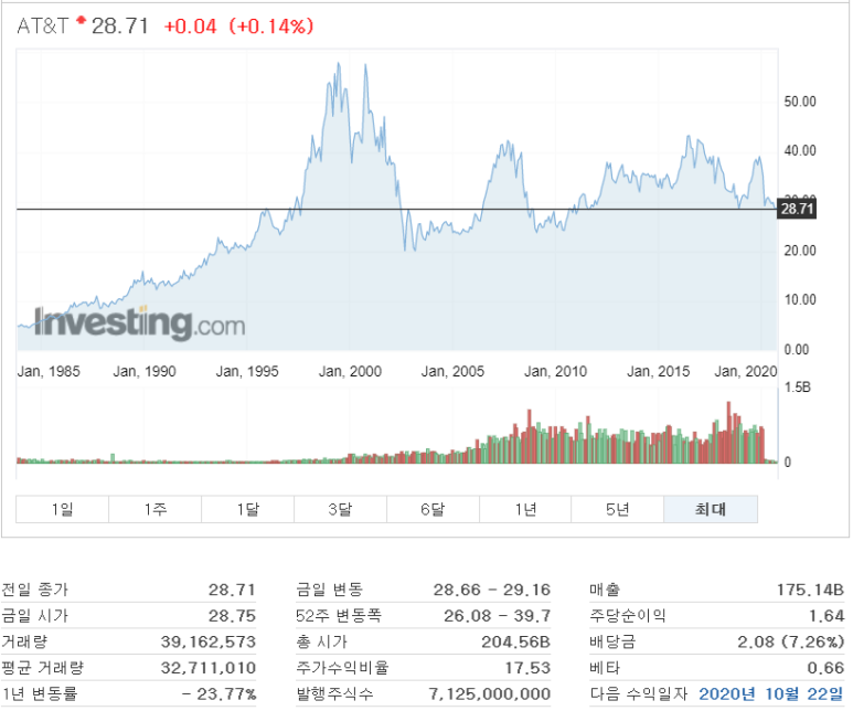 | AT&T(T) 미국 매수 10월 5일 (2) | 2020.10.09 |