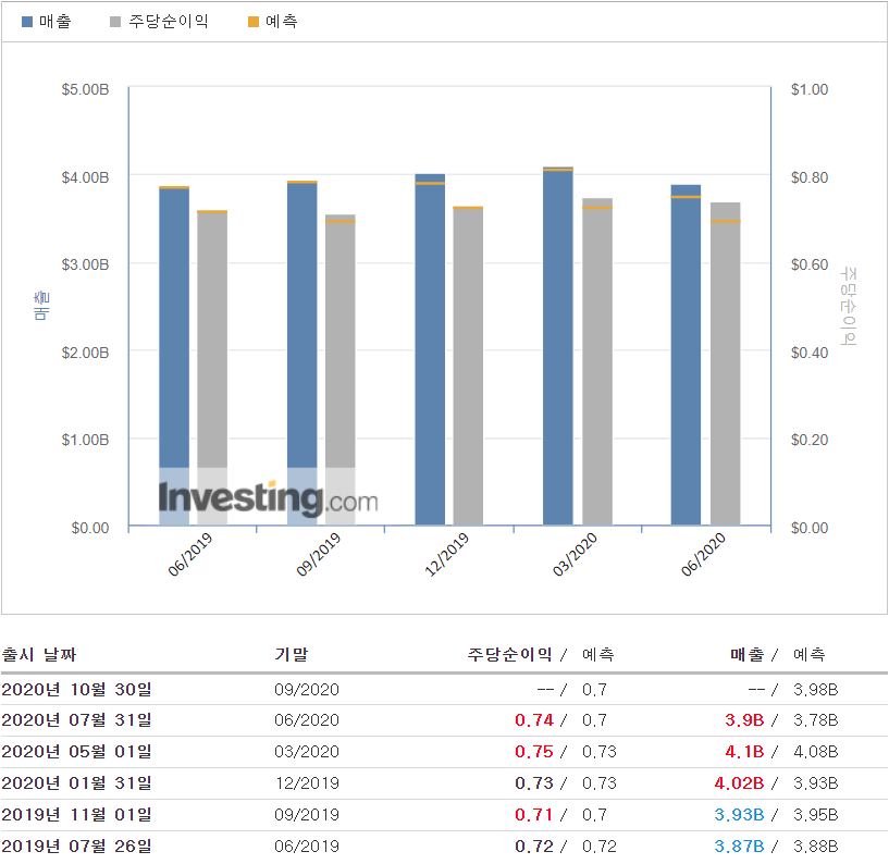 매출은 예상치 3.78B 달러를 약간 넘어선 3.90B 달러를 기록했고