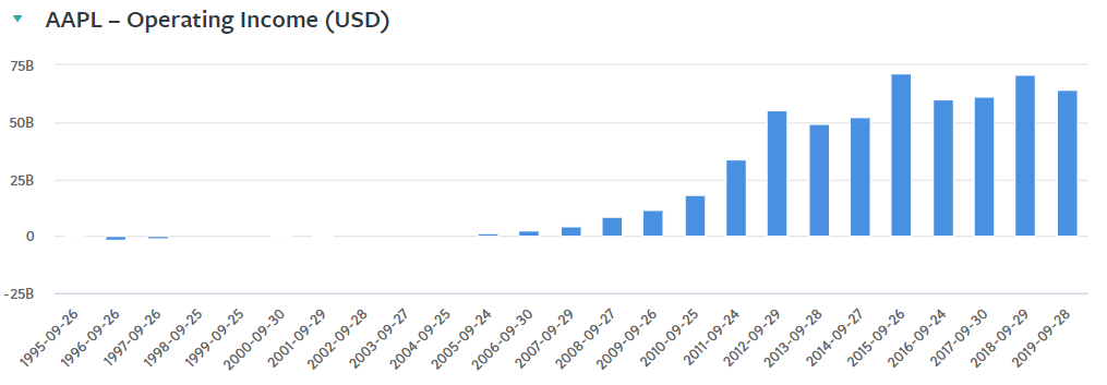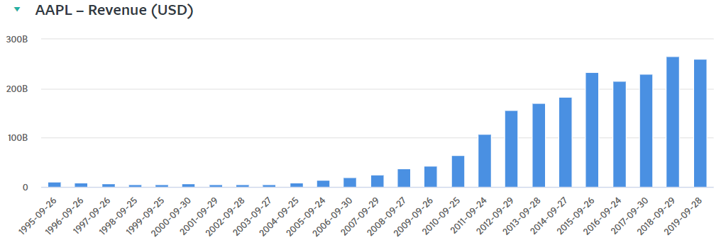 확실히 2005년에 5세대 아이팟을 출시한 이래로 엄청난 성장을 하고 있네요.그 이후 2007년에 출시한 아이폰 1세대도 큰 영향을 주었죠.