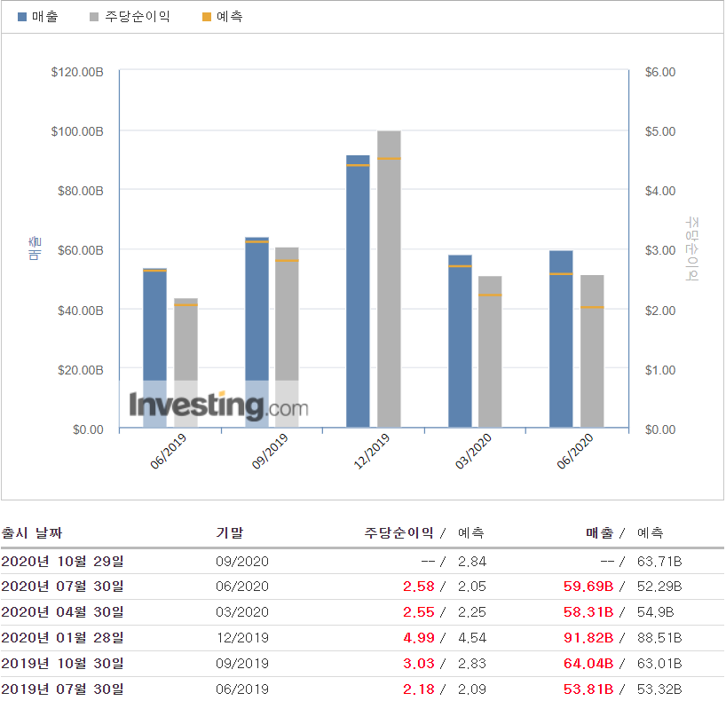 매출은 예상치 52.29B 달러를 초과한 59.69B 달러를 기록했고